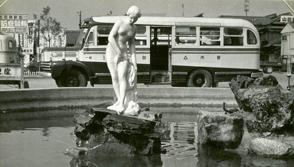 「ゆあみする女」は市の玄関口である宇部新川駅(当時の名称は宇部駅)前の噴水に設置され、子どもたちがそこに集まってスケッチをするようになりました。その姿をきっかけとして、子どもたちに本物の彫刻を見せよう、そして若手の彫刻家を育て、美術界に寄与しようという機運が高まりました。