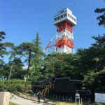 左:石炭記念館の蒸気機関車D51と竪坑櫓を利用した展望台 左:炭都の風景(遠方に現在の展望台となった竪坑櫓が見える)