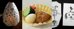 身近な素材を組み合わせて、おばけマスクをつくろう。