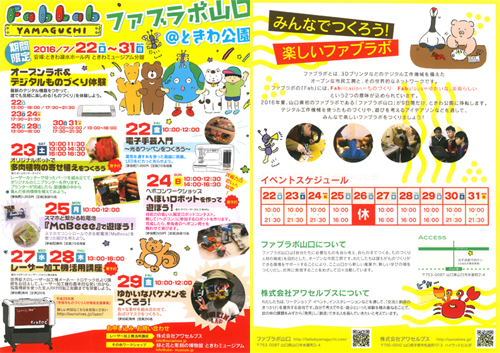 オープンラボ・ワークショップの詳しい内容につきましては、 ファブラボ山口( )までお問い合わせください。