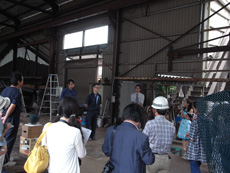 ただ作品を鑑賞するだけでなく、制作風景を見学し、作家自身から作品の解説を聞くことによって、より深く出品作品に親しんで頂きたいと思います。制作が行われている工場で作家の制作風景を見学後、作家自身から今回の作品についてお聞きしました。