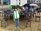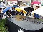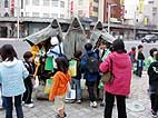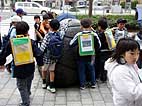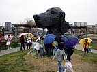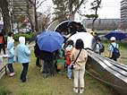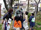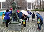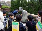 市内中心部に設置された彫刻25点を巡るガイド・ツアーを行いました。(参加者 小学二年生35名、保護者10名)