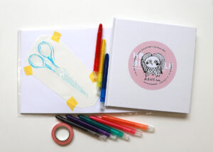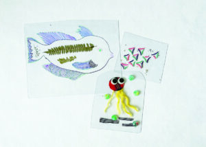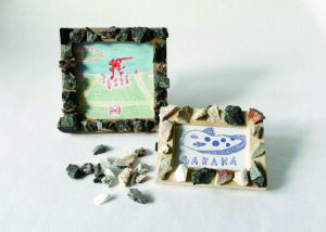 石の彫刻のかけらでフォトフレームを飾ったり、フロッタージュで図鑑をつくったり、気軽にアートを楽しめる工作キットを販売します。