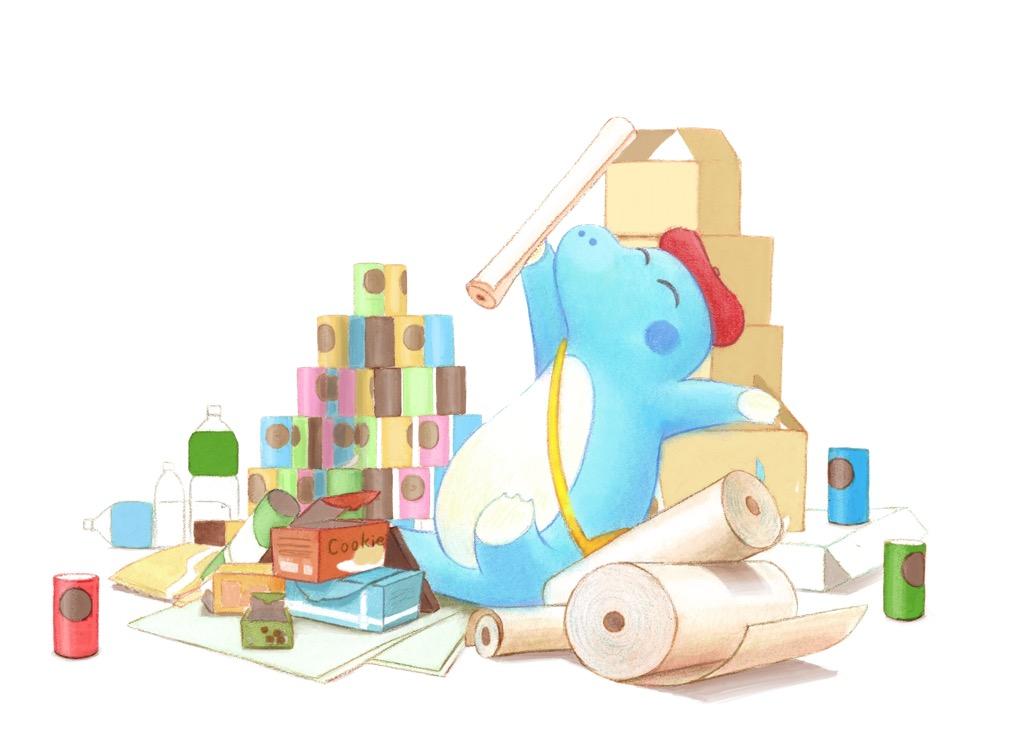 “紙”の詰め替え容器「ネスカフェ エコ&システムパック」の空きパッケージでつくった楽器や積み木であそべるよ。
