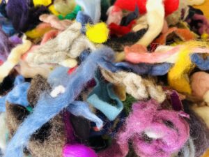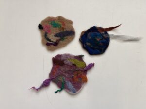 好きな色の羊毛やオーガンジーなどを組み合わせて小さなフエルトをつくろう。