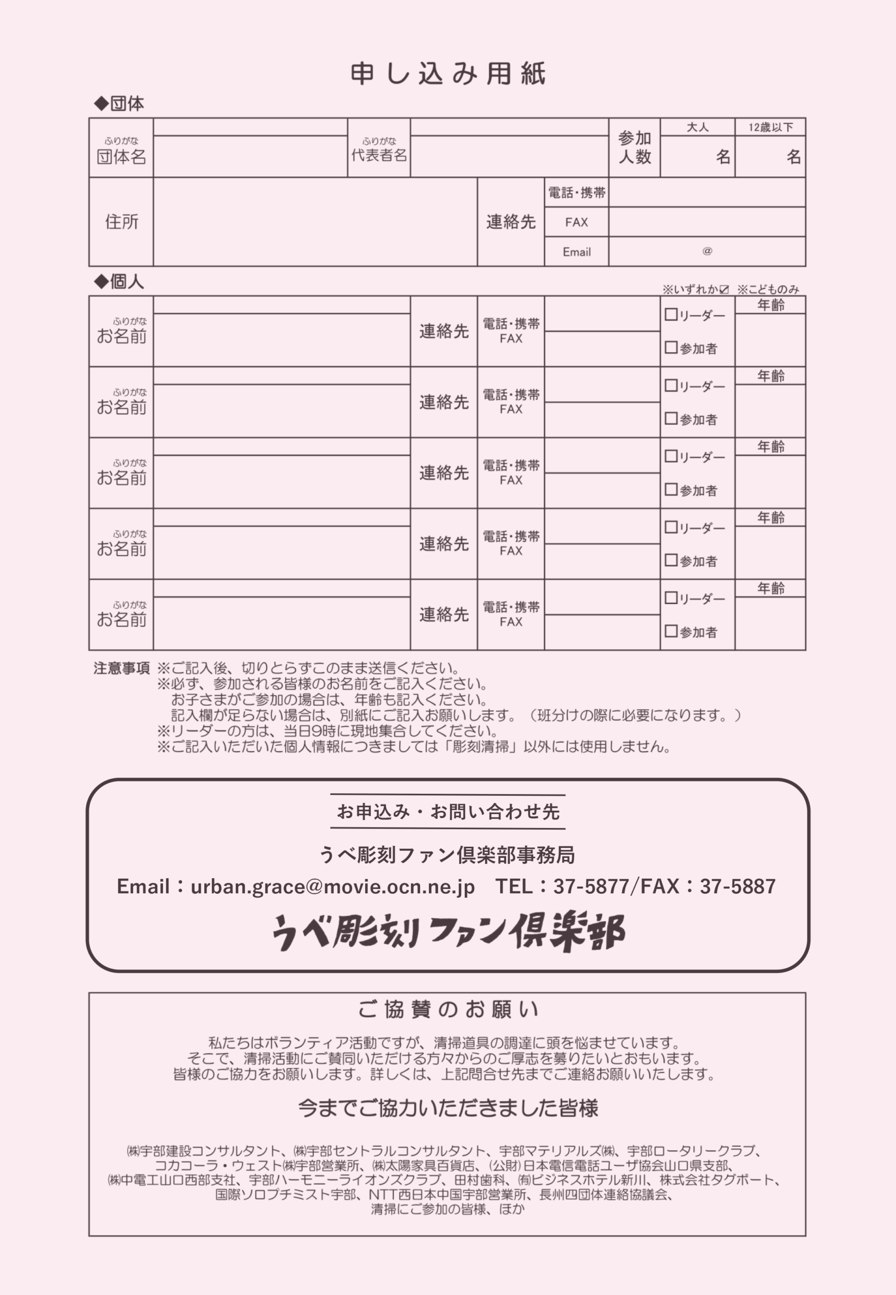 「緑と花と彫刻のまち」宇部には、たくさんの彫刻が設置されています。豊かな自然と美しく調和したアートの数々。その財産をキレイにしたい!守りたい!という気持ちを持って、うべ彫刻ファン倶楽部は、様々な活動をしています。ただいま第36回目の彫刻清掃を参加者を募集しています。皆さまのご参加をお待ちしております。