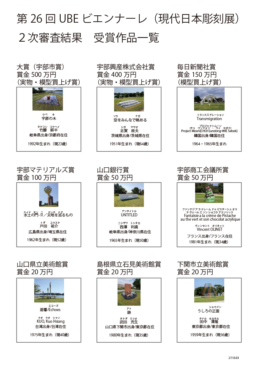 第26回UBEビエンナーレ(現代日本彫刻展) 各賞受賞作品の決定について