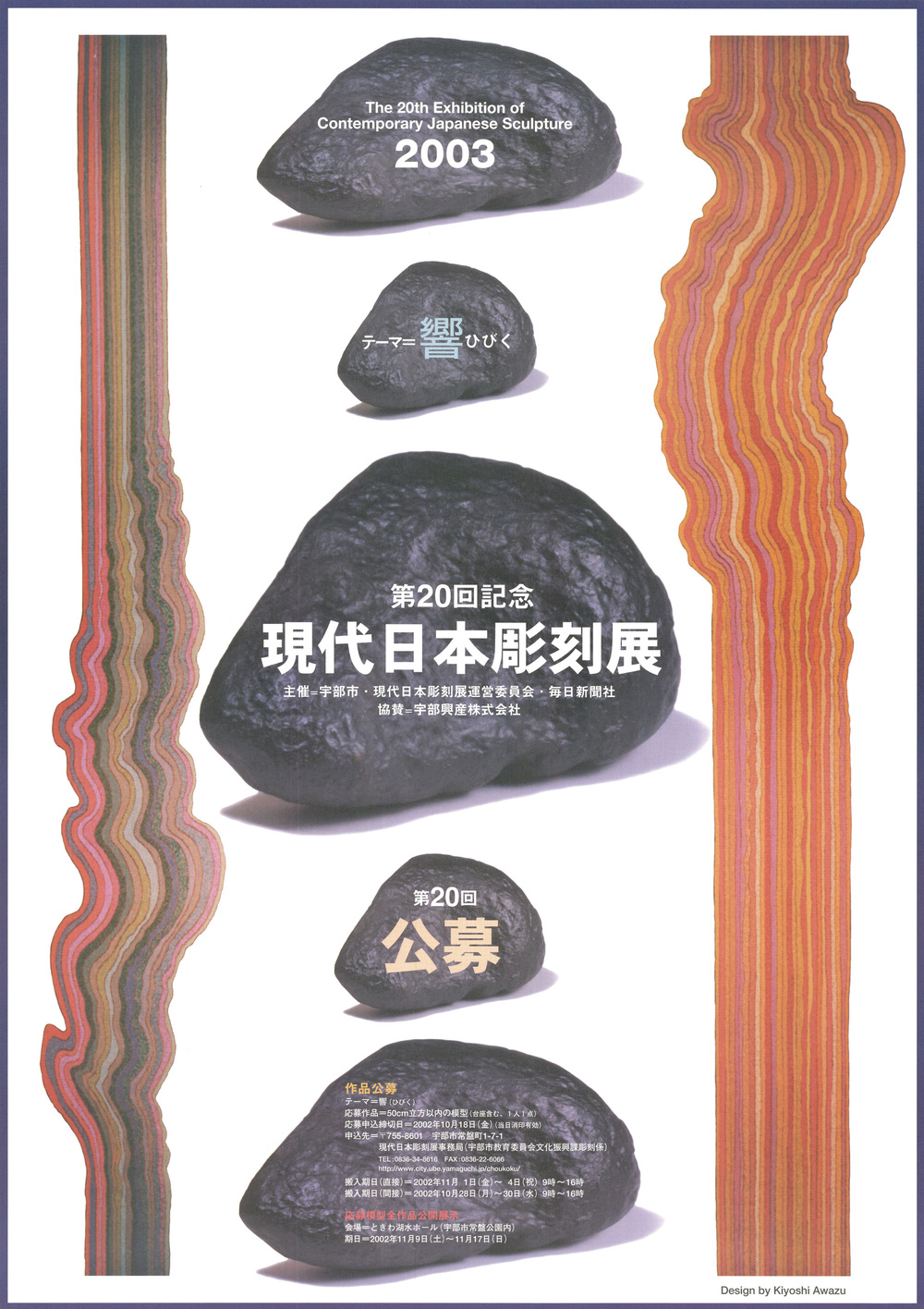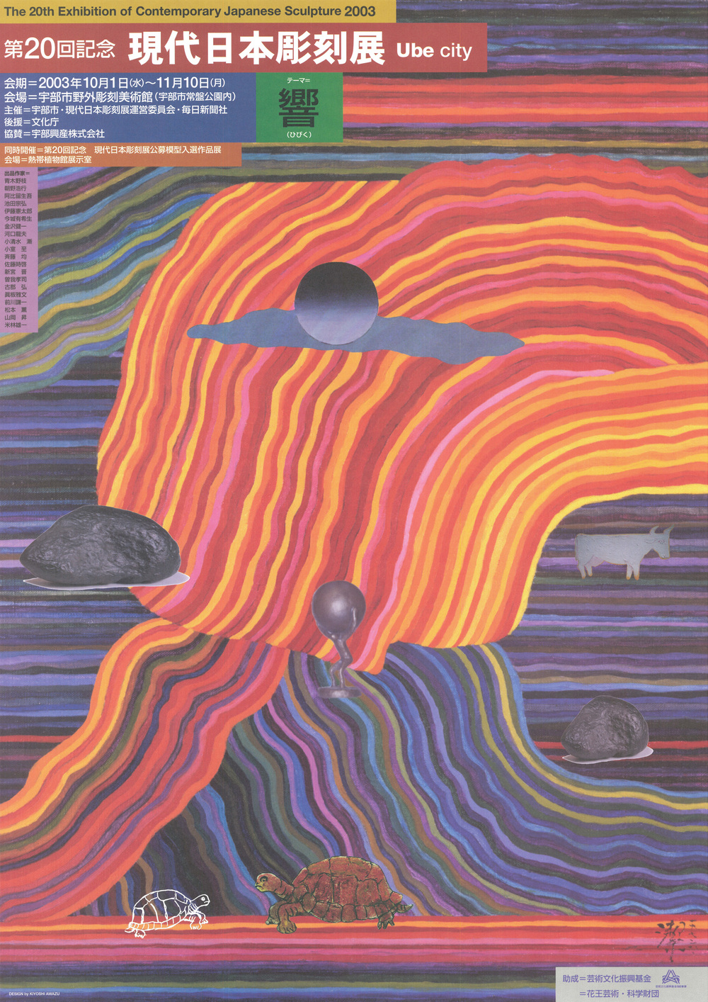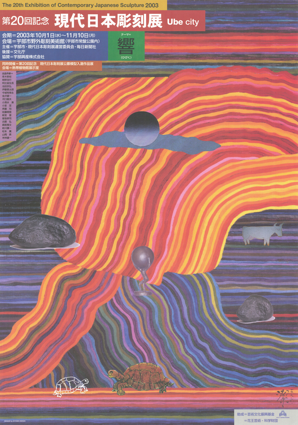 大賞(宇部市賞):「時のシルエット」 新宮晋〈招待〉 第20回展記念(土方定一記念)特別賞:「里の門」 眞板雅文〈招待〉 宇部興産株式会社賞:「3・4・5角 宇部のカメラ」 佐藤時啓〈招待〉 毎日新聞社賞:「音のかけら‐取り出された1201の音たち」 金沢健一〈招待〉 宇部市野外彫刻美術館賞:「重力質 Ring ʼ03」 曽我孝司 神奈川県立近代美術館賞:「微宇音‐2003」 米林雄一〈招待〉 兵庫県立近代美術館賞:「関係‐無関係・天と地と種子の響き」 河口龍夫〈招待〉 山口県立美術館賞:「関係(人と自然との間)」 小室至 下関市立美術館(植木茂記念)賞:「雲谷‐IV」 青木野枝〈招待〉 市民賞:「音のかけら‐取り出された1201の音たち」 金沢健一〈招待〉 「重力質 Ring ʼ03」 曽我孝司 「It blows.」 斉藤均 |