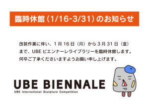 UBEビエンナーレライブラリー臨時休館(1/16-3/31)のお知らせ