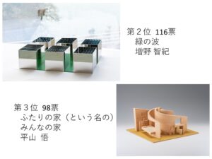このイベントは、会場の出品模型の中から気になる作品(最大3点)を選んで投票してもらい、ご参加いただいた全員に彫刻展ノベルティグッズをプレゼントしました。