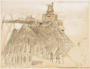 「上宇部炭坑(現・沼)15」1957年 鉛筆、水彩・紙