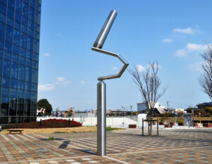 1990年代からパブリック・アートという言葉が急速に普及し、2000年代はさらに一歩踏み込んだ「まちとアート」の関係が生まれつつある時代でした。現代日本彫刻展でも、志向性の異なる作品が共存した時代です。松本薫の「風の予感 Ⅲ」は、シンプルな形体とヘアライン仕上げのステンレスが落ち着いた印象で、風に吹かれてゆっくりと回転する様子は、優雅でもあります。周囲の環境にひとつの基調を与えるような洗練された作品です。