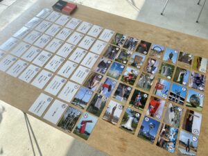 彫刻かるたは20セット程度、1セット絵札・読み札とも各37枚(計74枚)、貸出期間は2週間程度です。