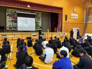 写真左:「制作体験」小学校6年生、右:「講話」中学校1年生